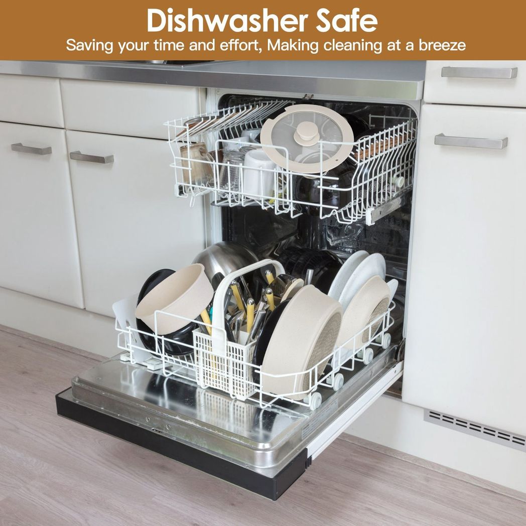 Fast & Even Heat Induction: Energy-saving aluminum alloy bottom makes the pan to heat up more quickly, evenly, absorbs heat efficiently and penetrates the food to stimulate and release the original flavor of the food. Heat resistant up to 480℉, dishwasher safe, making cleaning at a breeze.
