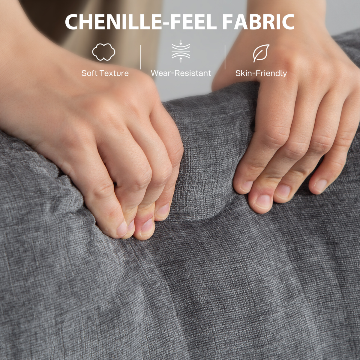 ● Chenille-feel fabric upholstery offers a luxurious touch