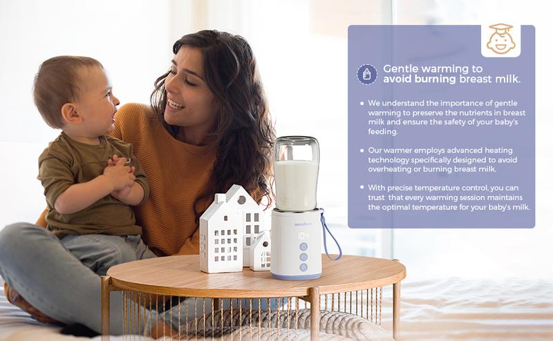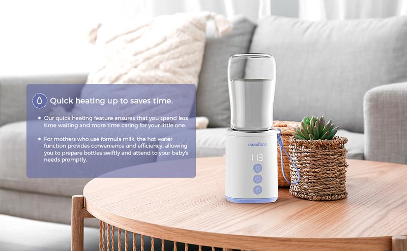 - Offers Milk and Water heating modes and 4 temperature settings of 98, 104, 113, 122°F. Milk mode gently warms breastmilk to protect its nutrients and keep away from overheating or scalding. Water mode quickly heats water and formula milk. Automatically switches to keep-warm mode with a gentle beep after heating. Please always check the temperature with the back of your hand before feeding.
