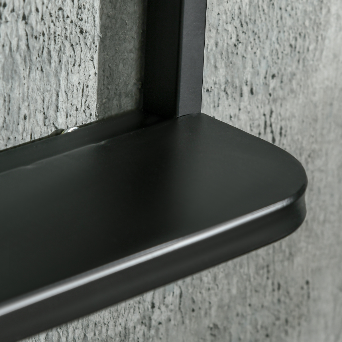 Durable: Black mirror frame is made from sturdy metal. Resistant to wear, it's suitable for everyday use.Dimensions: Mirror: 86.3H x 53.3W x 10.2D. Shelf: 53H x 10L cm.
